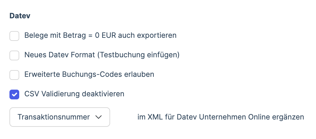 Die Validierung prüft den Export auf gültige Zeichen nach Anforderungen von Datev, die ansonsten beim Import in DATEV unter Umständen abgeschnitten, ignoriert oder falsch importiert werden würden. Das bedeutet nicht unbedingt, dass diese Prüfung in deinem Fall relevant ist. Bitte deaktiviere deshalb im Modul Finanzbuchhaltung Export zuerst die CSV Validierung (Option: CSV Validierung deaktivieren) und prüfe, ob dein Export in Ordnung ist. Erstelle gerne ein Support-Ticket, falls du trotzt Deaktivierung der Validierung Probleme hast.
