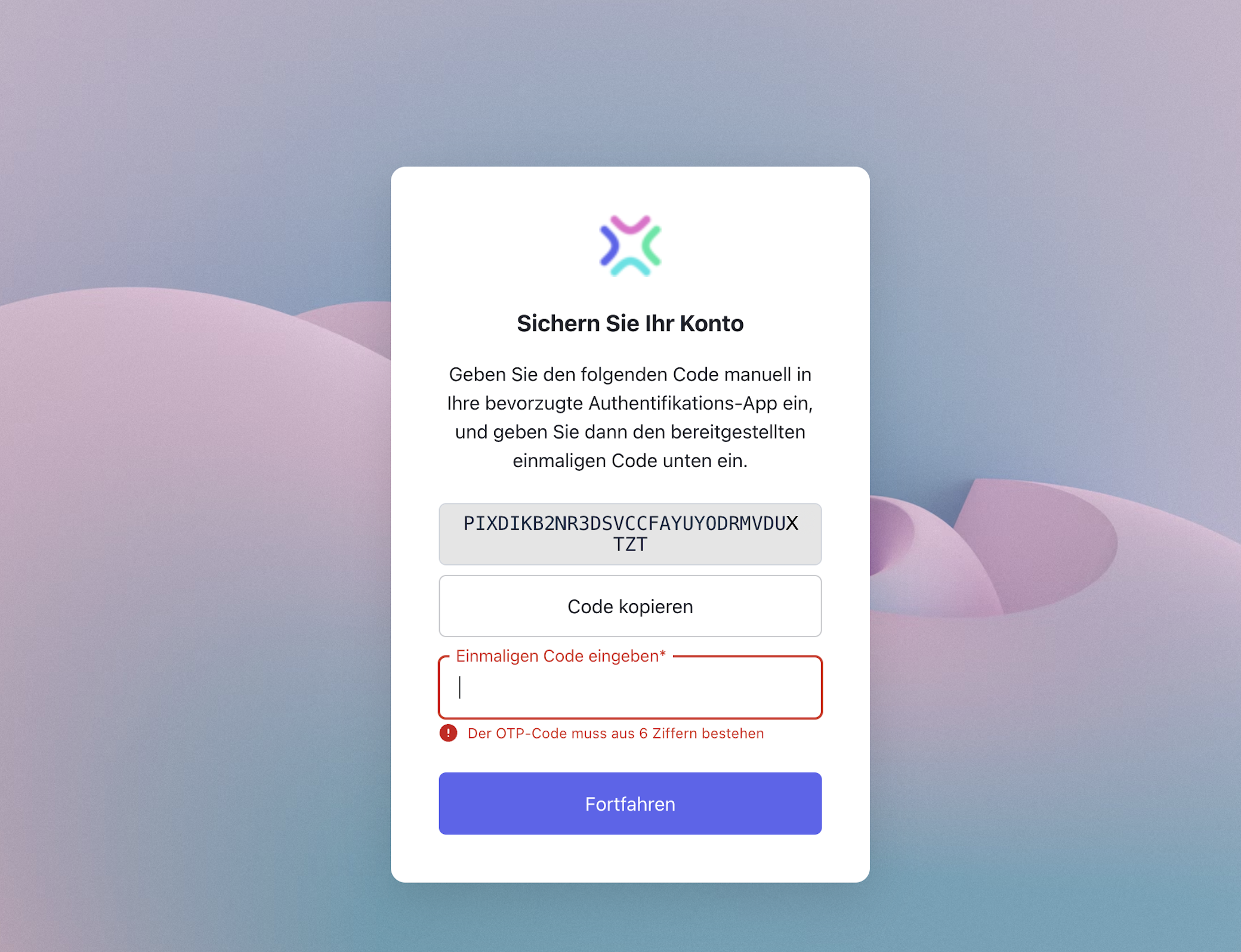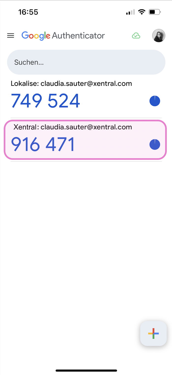 Gib das One-Time-Password aus der App im Xentral Login ein, um dich vollständig einzuloggen.
