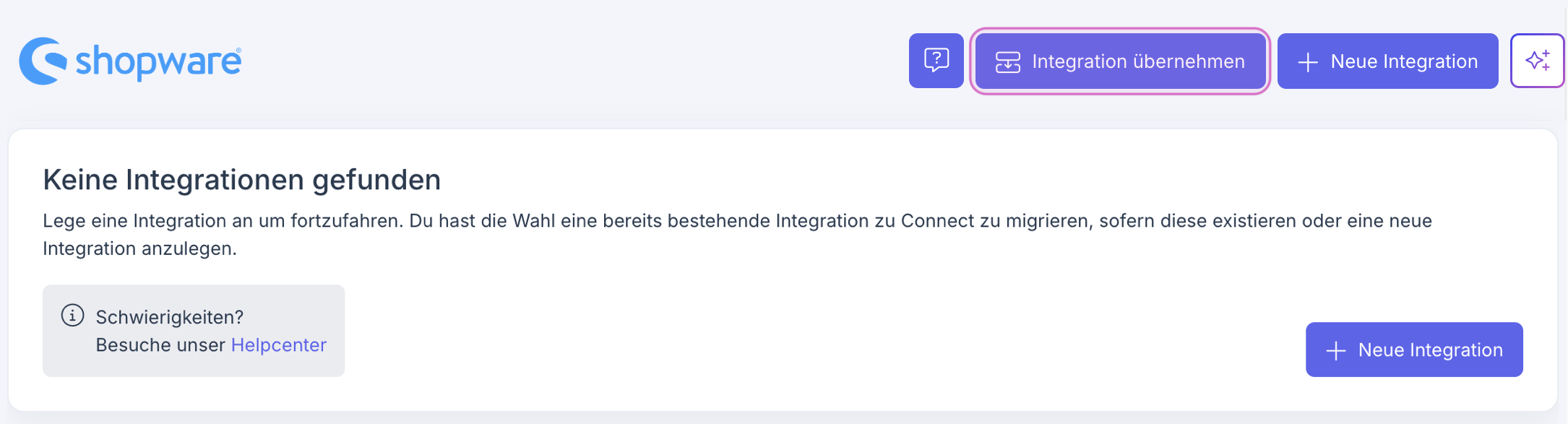 Klicke auf Integration übernehmen, um den Wizard zu starten: