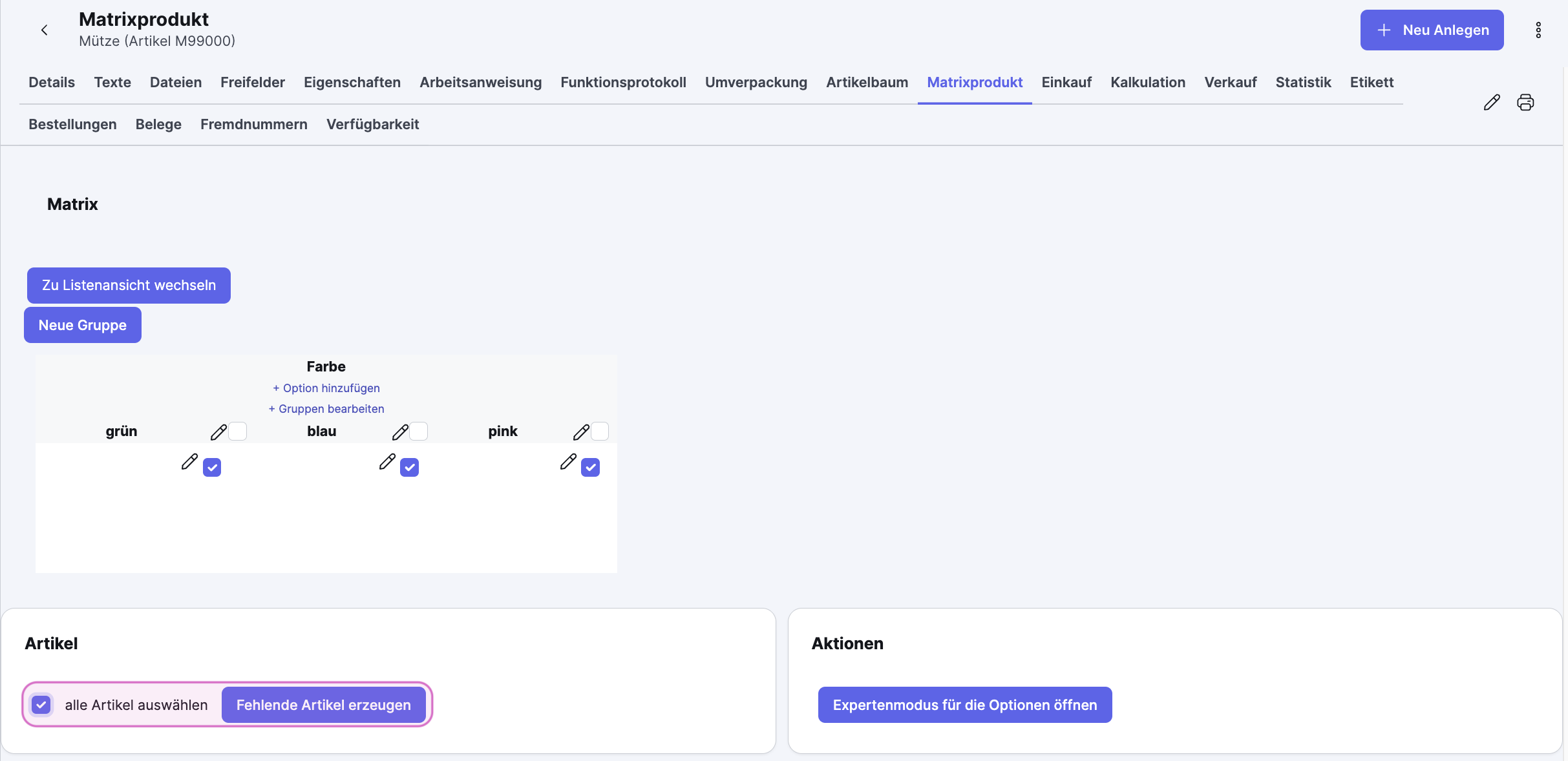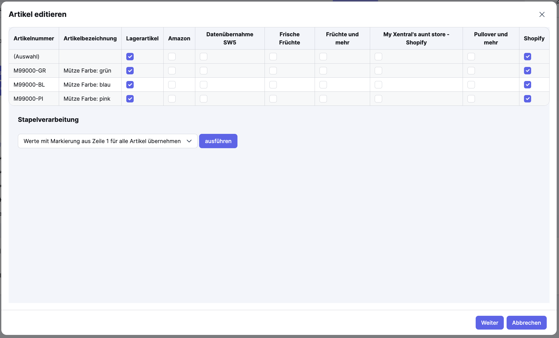 Matrixprodukte und Varianten über Connect mit Shopify synchronisieren