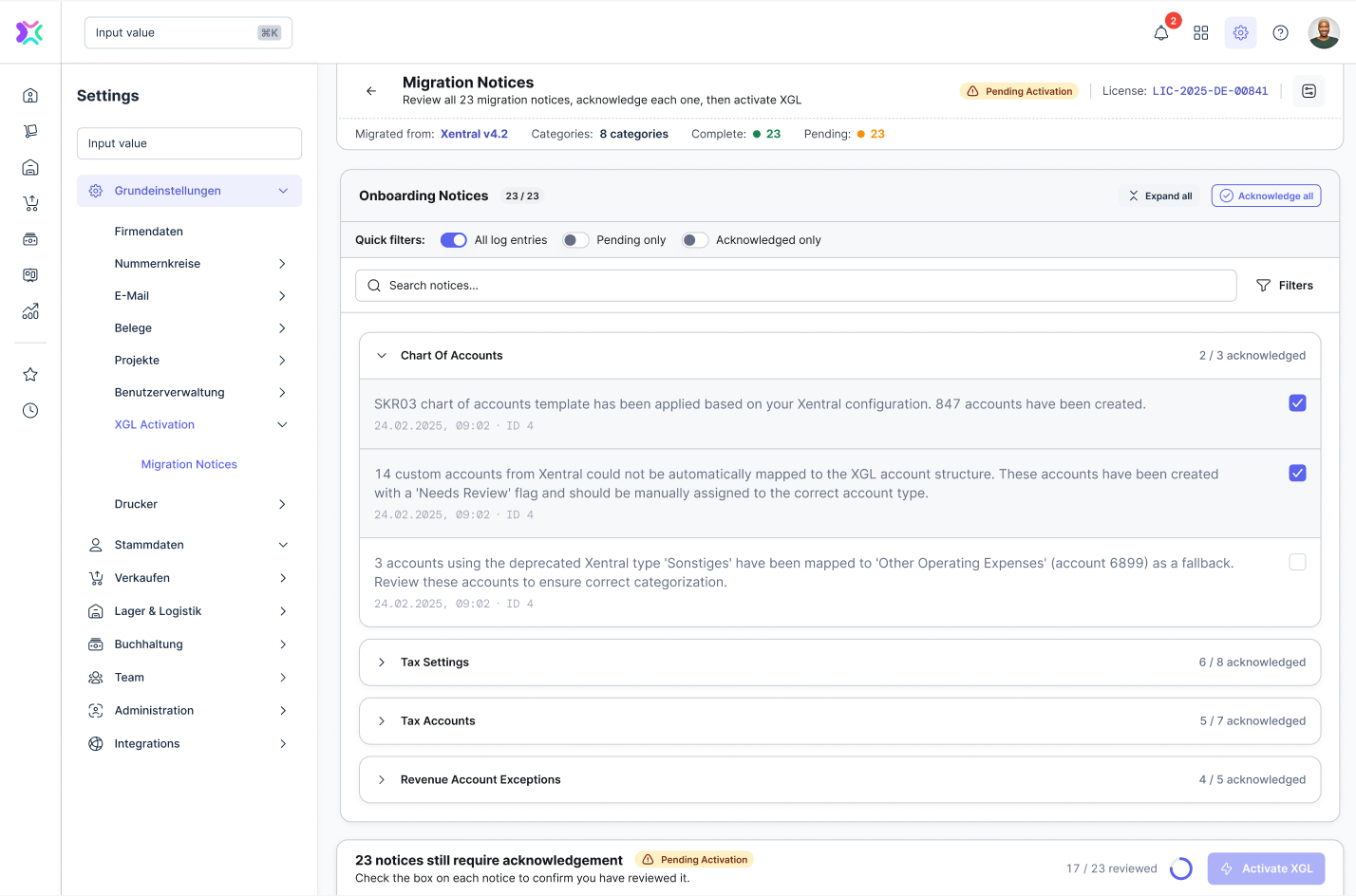 Im ersten Schritt übertragen wir deine Einstellungen und Daten in das Xentral General Ledger.