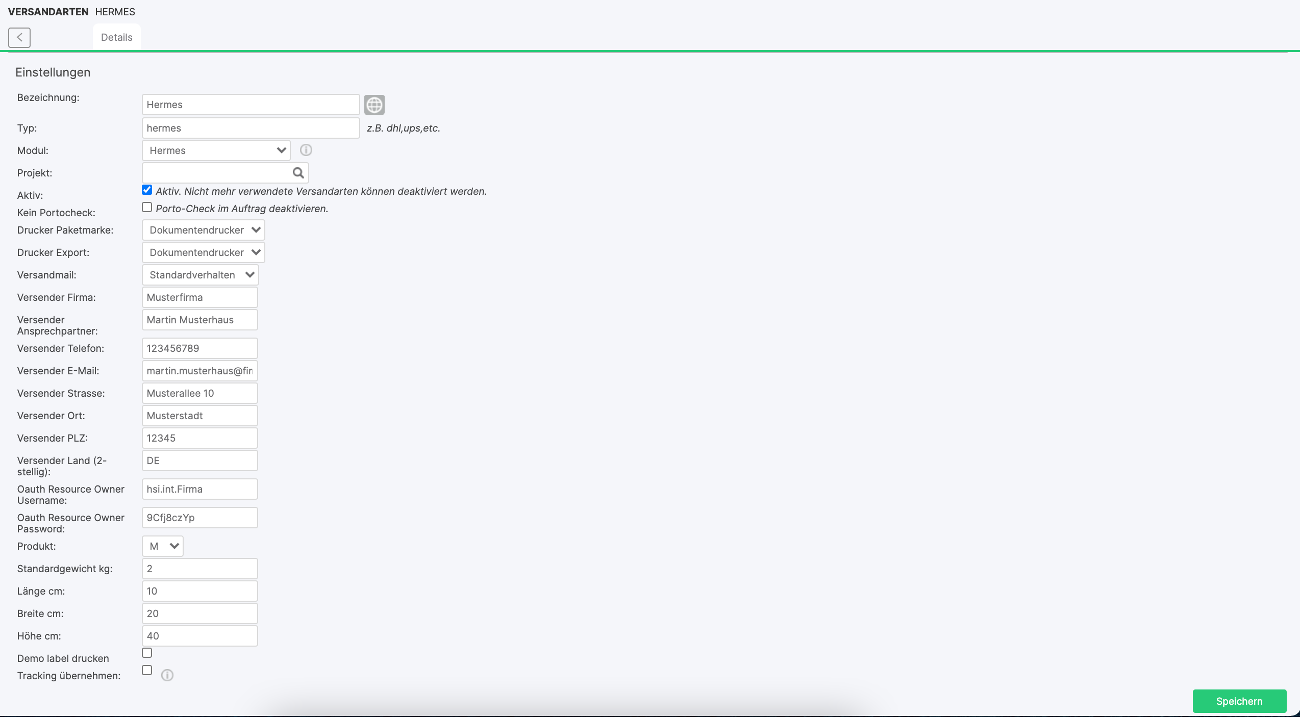 Oauth Resource Owner Password → Gib das Oauth-Passwort an, dieses findest du im Hermes-Geschäftskundenportal oder im Profipaketservice