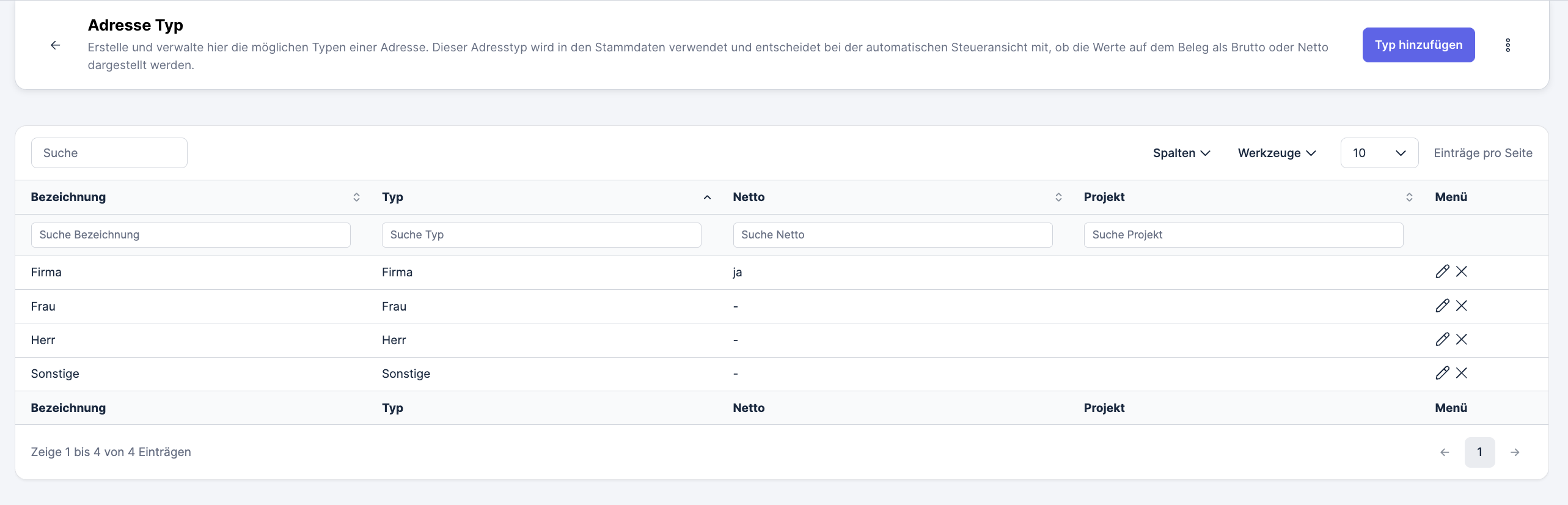 Adresstypen: Anrede und B2B-Nettoanzeige