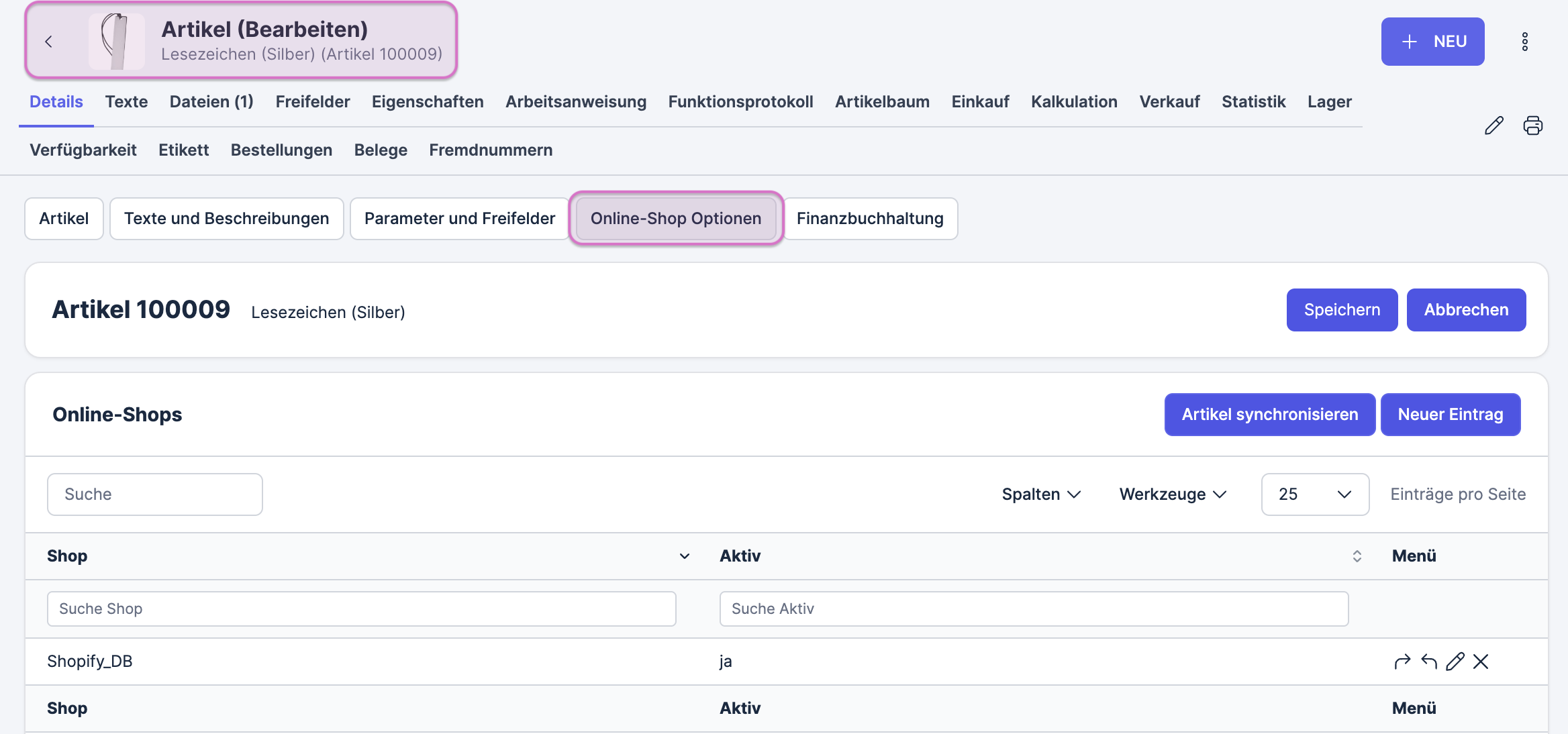 Du befindest dich nun im Tab Details der Artikelstammdaten.