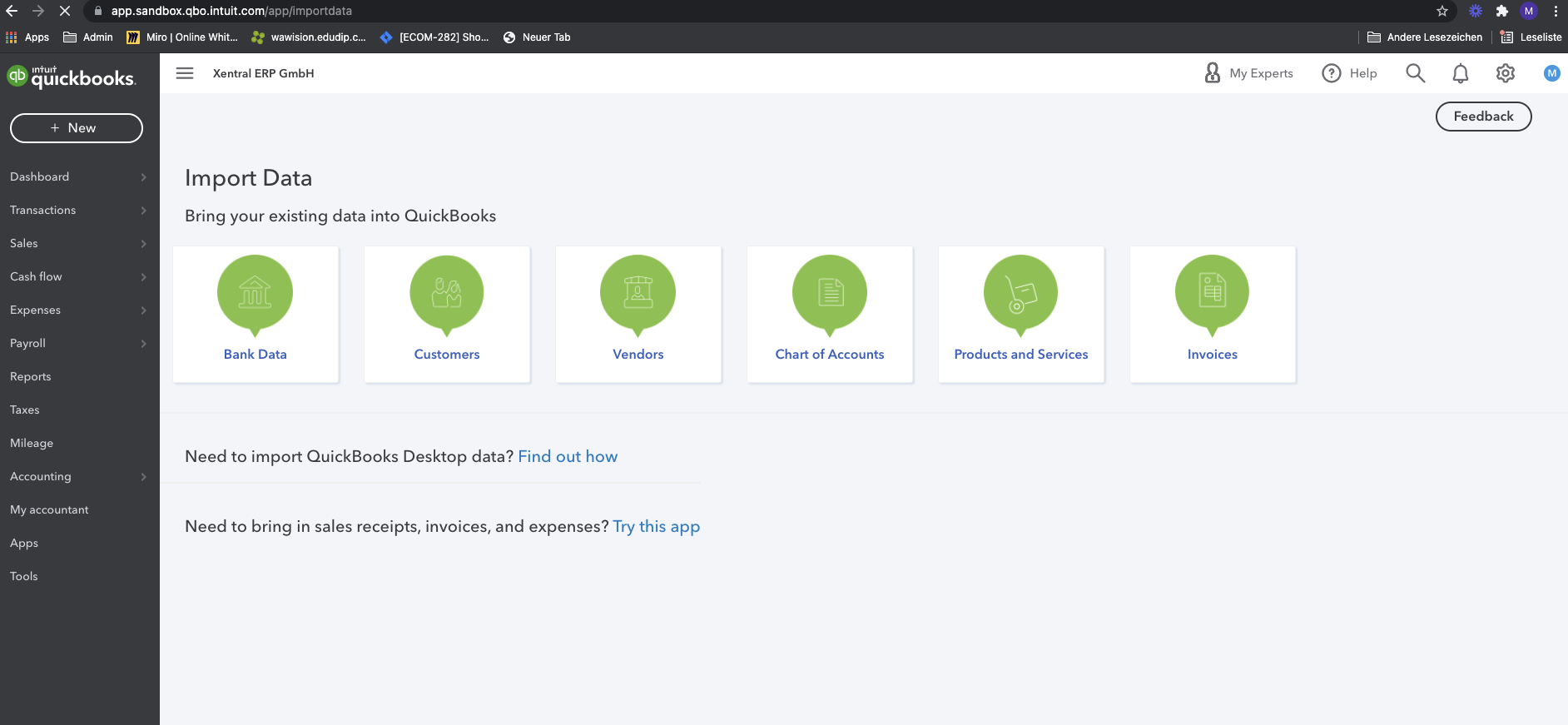 Für die QuickBooks-Integration werden wir zunächst das Hochladen von Daten in einer MVP-Version unterstützen: