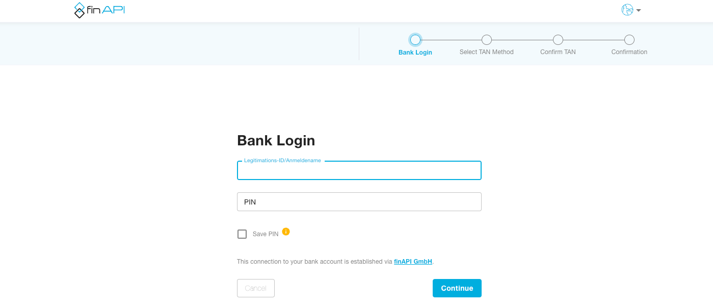 Gib die Onlinebanking-Daten ein und folge den Anweisungen. Du musst die Anbindung mit einer TAN autorisieren.