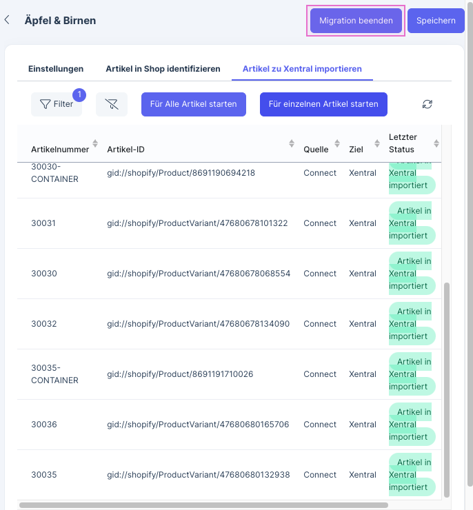 Du kannst die Migration beenden, wenn die Schaltfläche wieder aktiv ist. Solange du diese Schaltfläche noch nicht geklickt hast, kannst du auch später nochmal zurückkehren und ggf. weitere Artikel importieren.