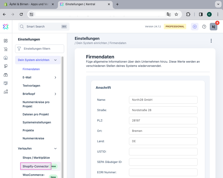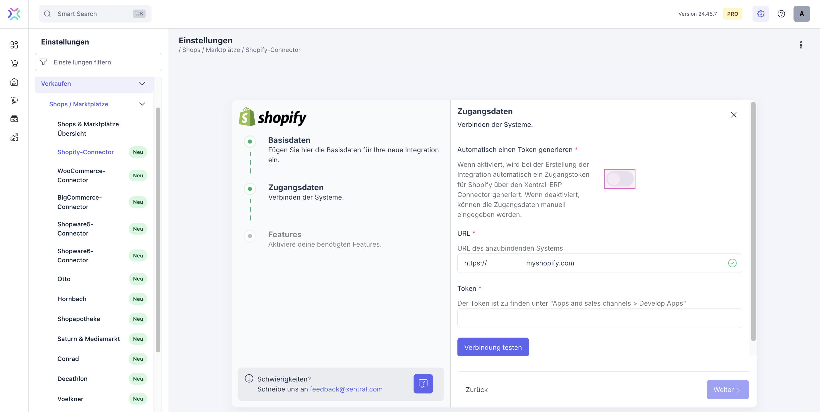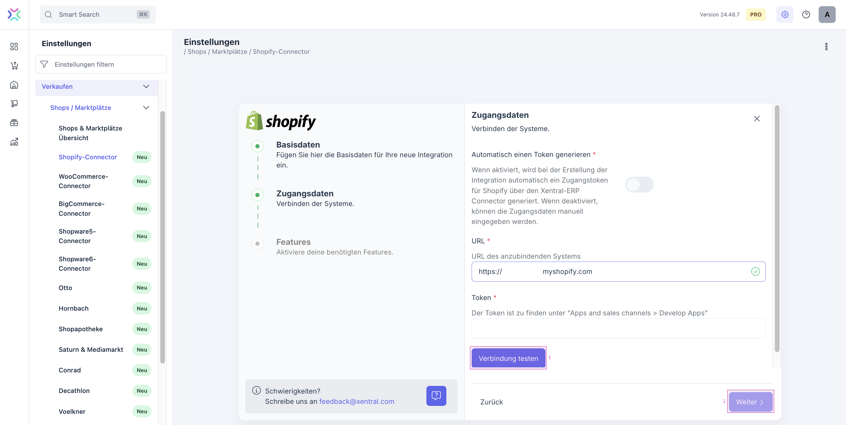 Wechsele nun zurück zum Xentral-Fenster und fahre mit den Zugangsdaten fort.