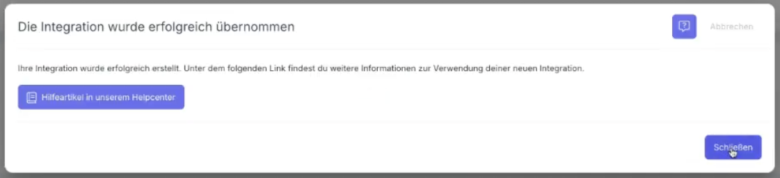 Du kannst nun mit der Einrichtung der Anbindung fortfahren.
