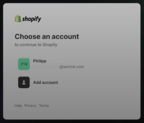Markiere deinen Shopify-Account in der Liste und warte einen Moment: