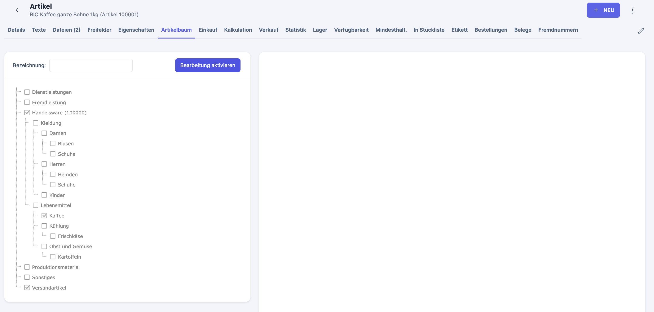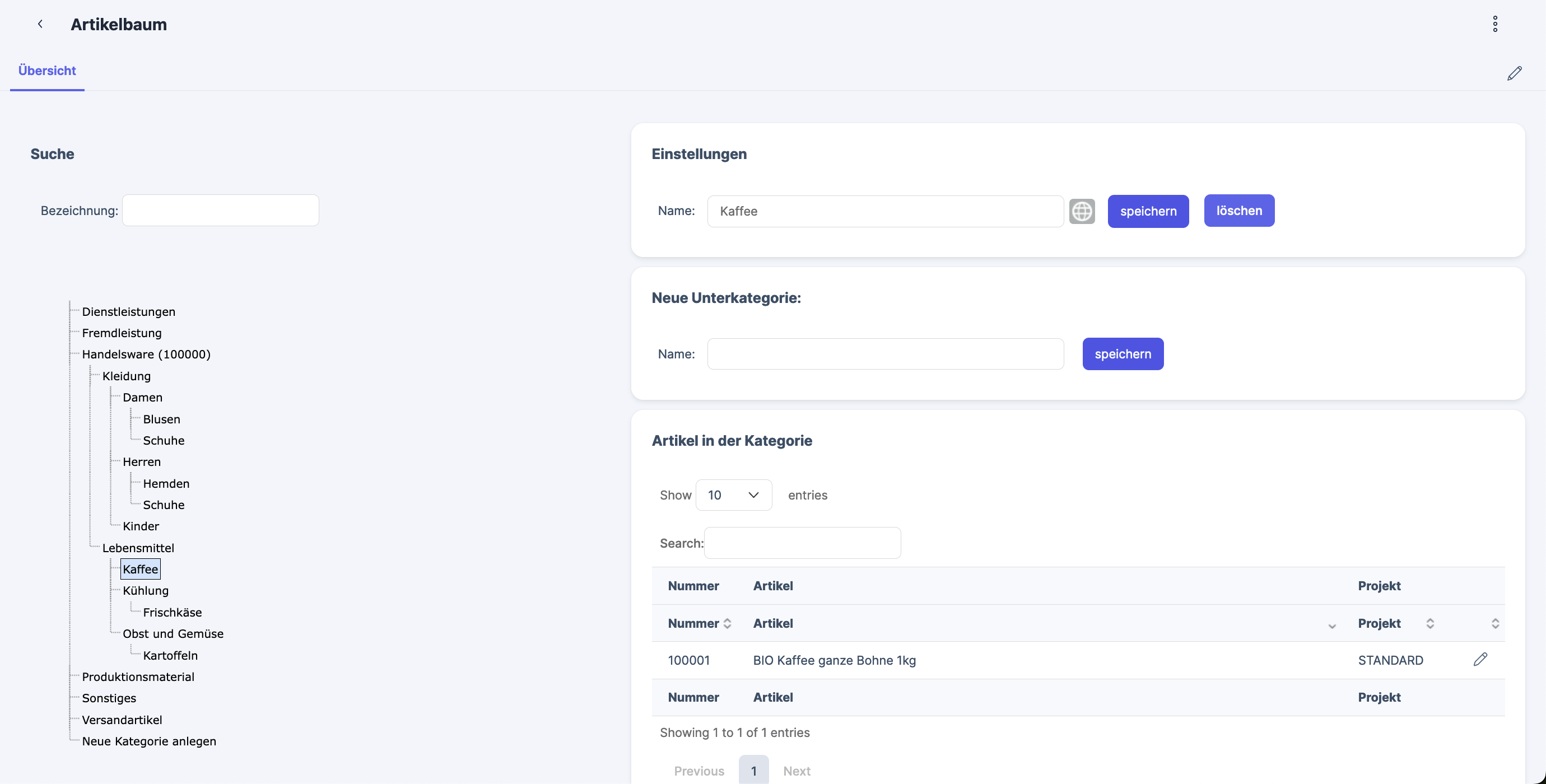 These categories are used for the export to online shops and are separate from the categories in the Item categories app. The categories in the Item categories app are used for product-specific number ranges as described here: Artikelnummernkreis und SKU (Stock Keeping Unit) (Xentral Artikelkategorien).