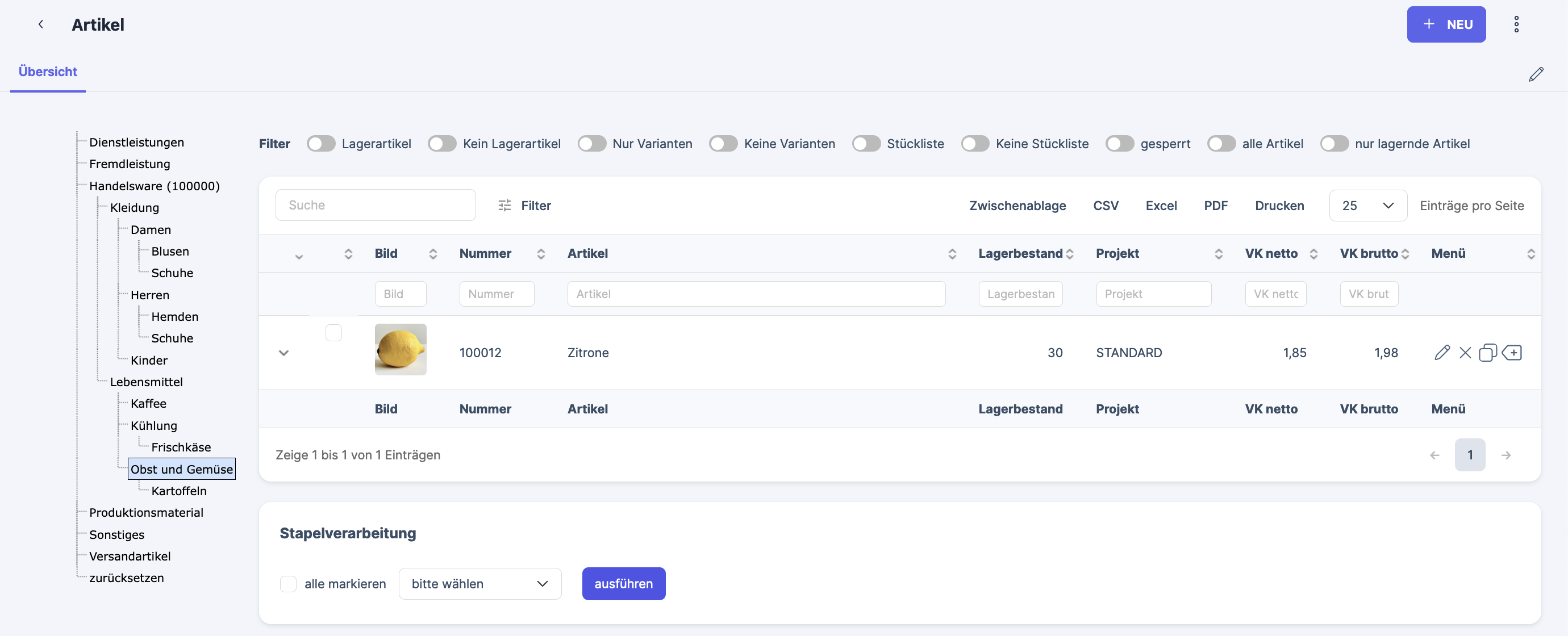 You can export the item tree to some online shops to automatically create your desired categories and shop structures. You can select which part of the tree should get exported by selecting a root category in the Xentral interface of your online shop. This will be the basis from which the shop exports the item tree.