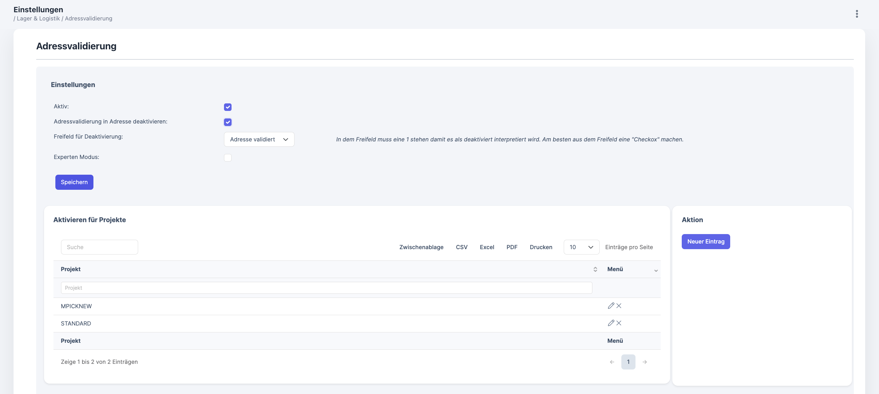 If no project is defined in the activation for projects, the address check for all sales channels/ logistics channels (= projects) takes effect.
