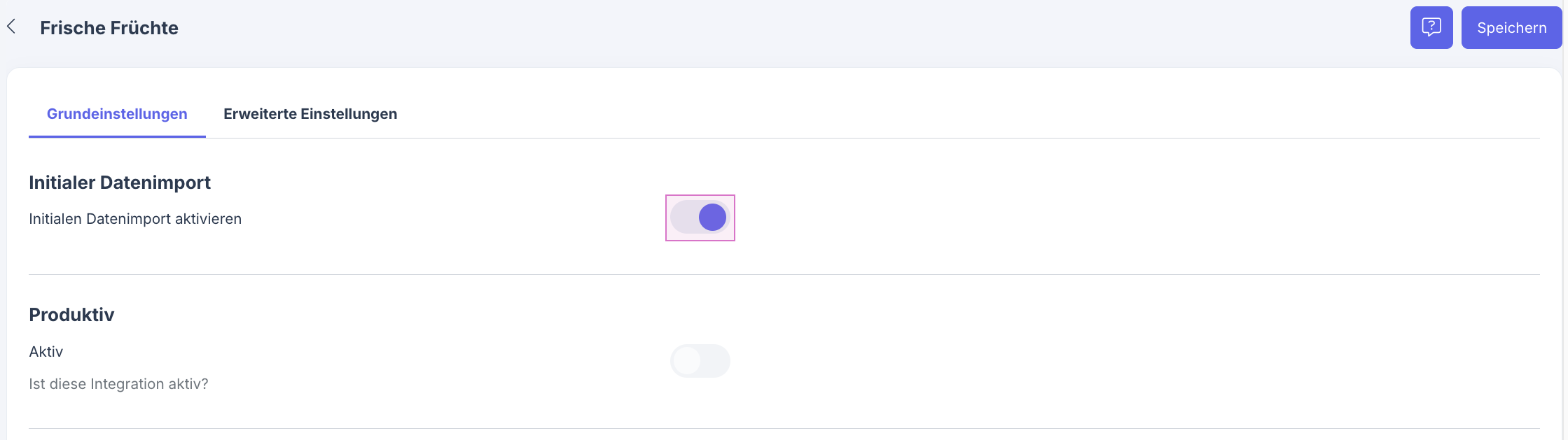 Klicke auf Speichern und kehre zurück zur Übersicht. Nun kannst du in deiner Anbindung den initialen Datenimport starten: