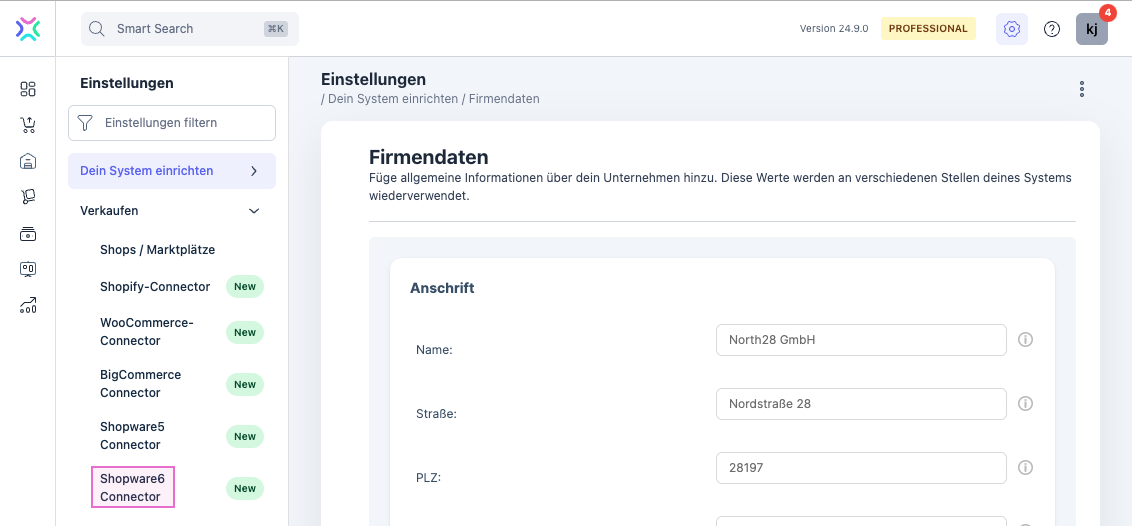 Folge dem Menüpfad Einstellungen > Verkaufen > Shops/Marktplätze > Shopware 6 Connector.