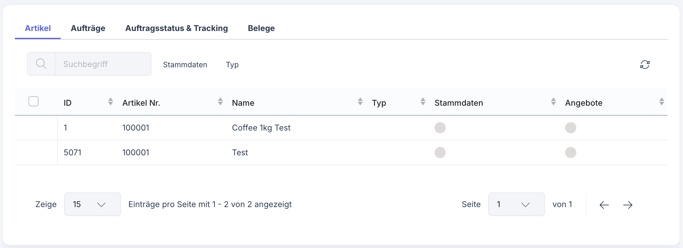 Im Reiter Artikel bekommst du einen Detailüberblick zum Artikel- und Angebotsabgleich zwischen Marktplatz und Xentral: