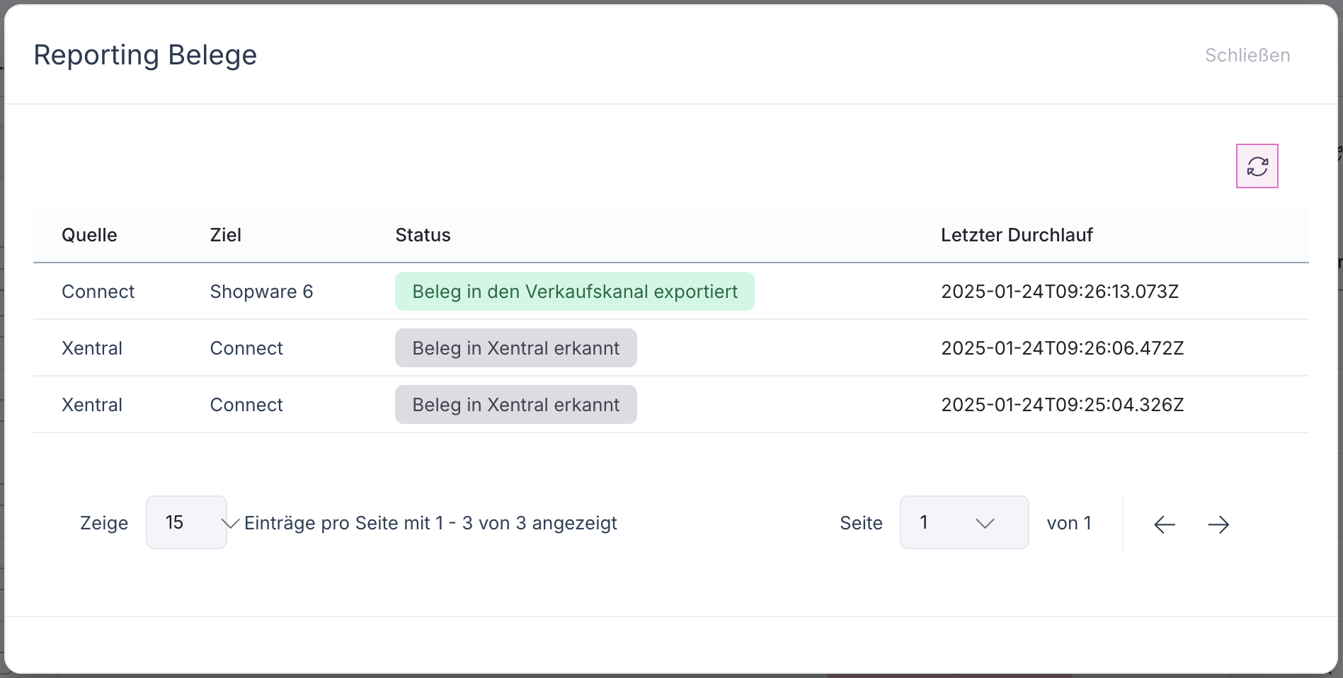 Im Produktivbetrieb werden die Belege zwischen Xentral und Marktplatz ereignisbasiert ausgetauscht, also immer nur dann, wenn ein Beleg erstmalig erzeugt wird.