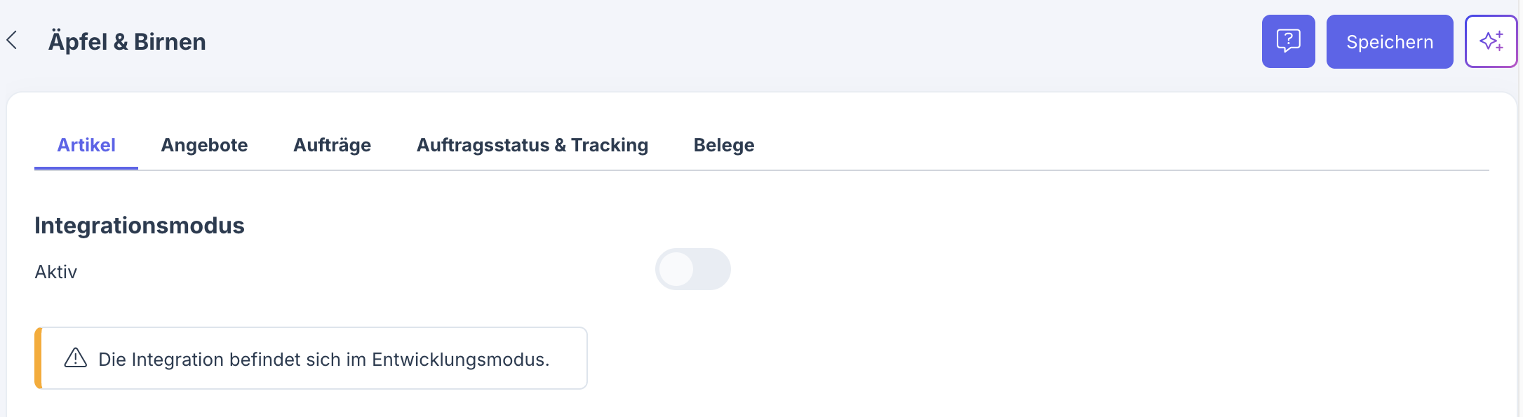 Diese Schaltfläche benötigst du erst, nachdem du alle Einstellungen vorgenommen und getestet hast und alles bereit ist für den produktiven Einsatz deiner Schnittstelle.