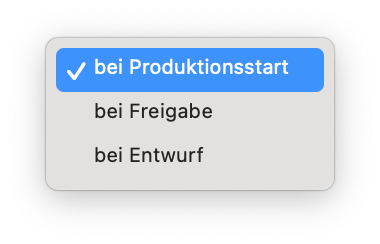 Reservierung Material: Hier legst du den Zeitpunkt fest, zu dem das Material für die Produktion reserviert werden soll: