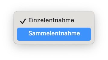 Bei der Einzelentnahme wird jede Materialzeile einzeln erfasst. Dies ist beim Buchen aufwendiger, ermöglicht dir aber Anpassungen am Entnahme-Lagerplatz vorzunehmen und einzelnes Material zu verschiedenen Zeitpunkten zu entnehmen. Bei der Sammelentnahme wird das gesamte Material zu einem Zeitpunkt komplett entnommen. Dies ist bequemer als die Einzelentnahme, ermöglicht aber keine Anpassungen einzelner Material-Zeilen.