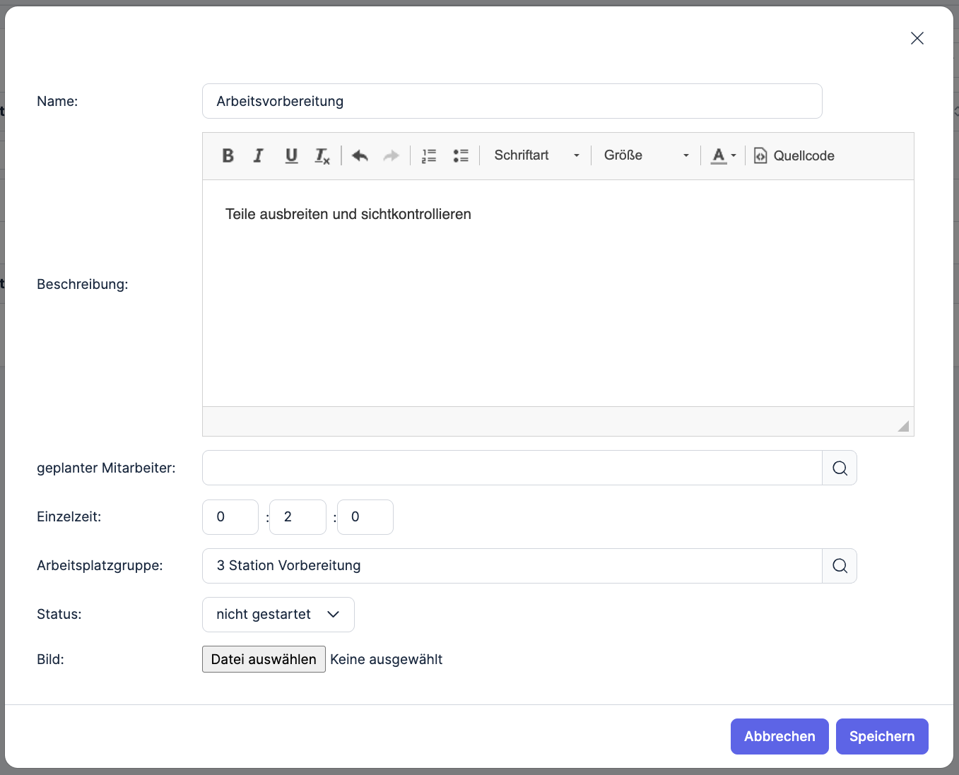 Auftrag: Hier kannst du die Nummer eines Verkaufsauftrages eintragen, um eine Produktion und einen Verkaufsauftrag miteinander zu verknüpfen.