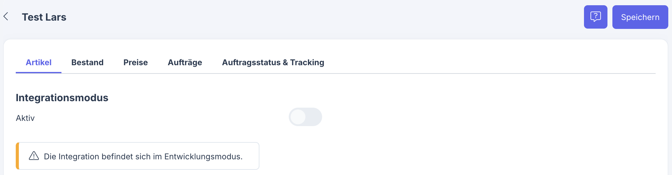 Diese Schaltfläche benötigst du erst, nachdem du alle Einstellungen vorgenommen und getestet hast und alles bereit ist für den produktiven Einsatz deiner Schnittstelle.