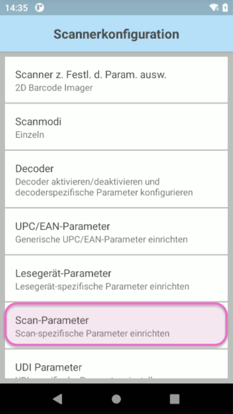 Tippe auf Scan-Parameter.