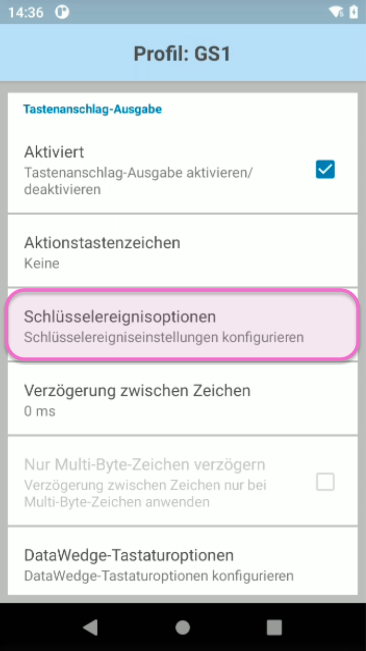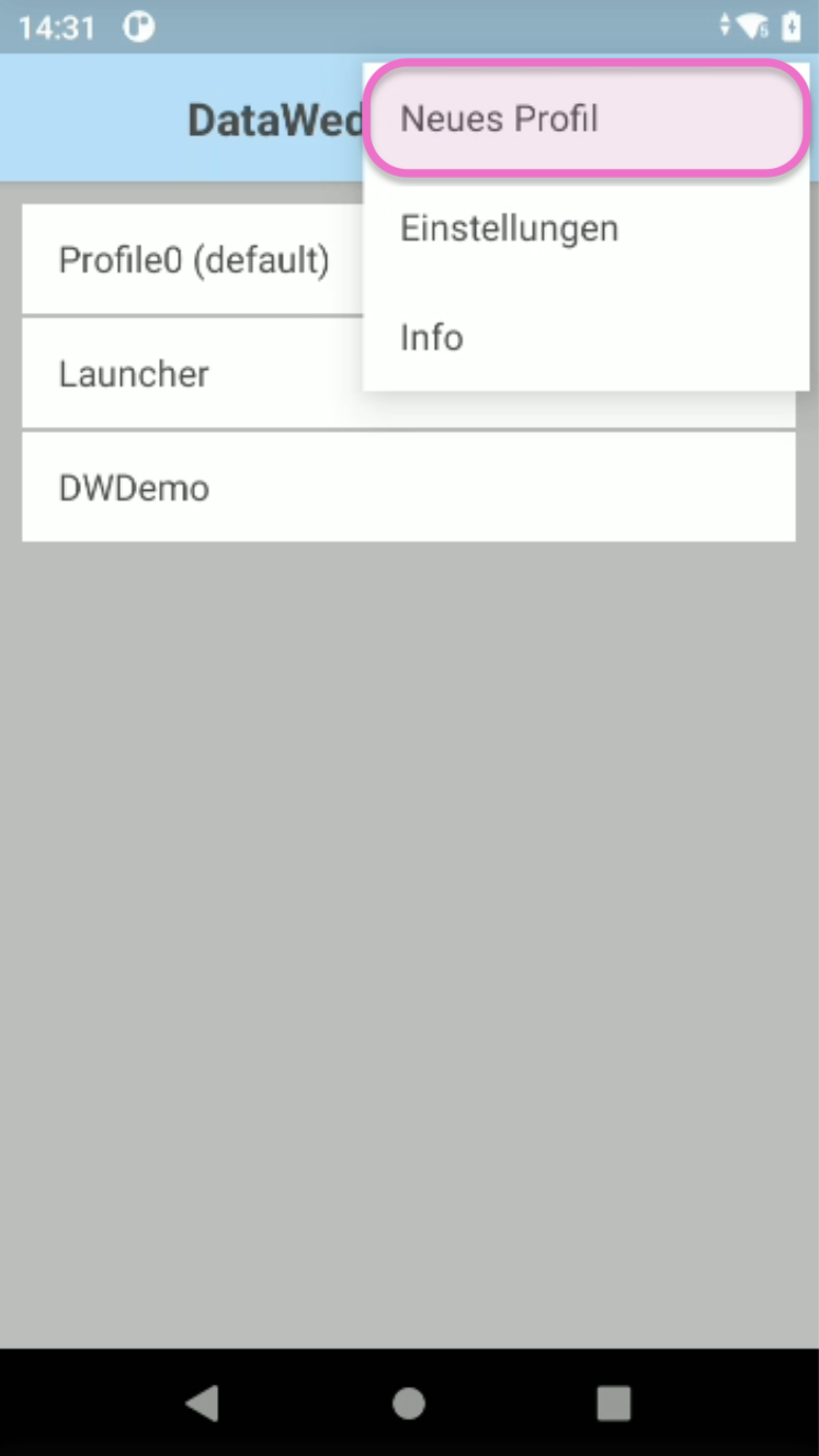 Stelle sicher, dass du dich im Menü DataWedge-Profile befindest.