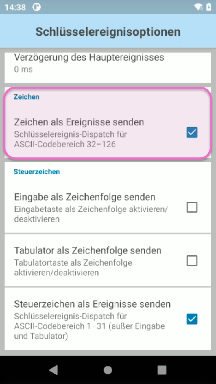 Navigiere zum Bereich Tastenanschlag-Ausgabe > Schlüsselereignisoptionen.