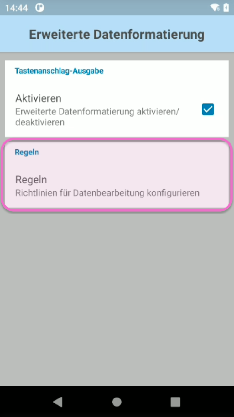 Navigiere zu Tastenanschlag-Ausgabe > Erweiterte Datenformatierung > Regeln.