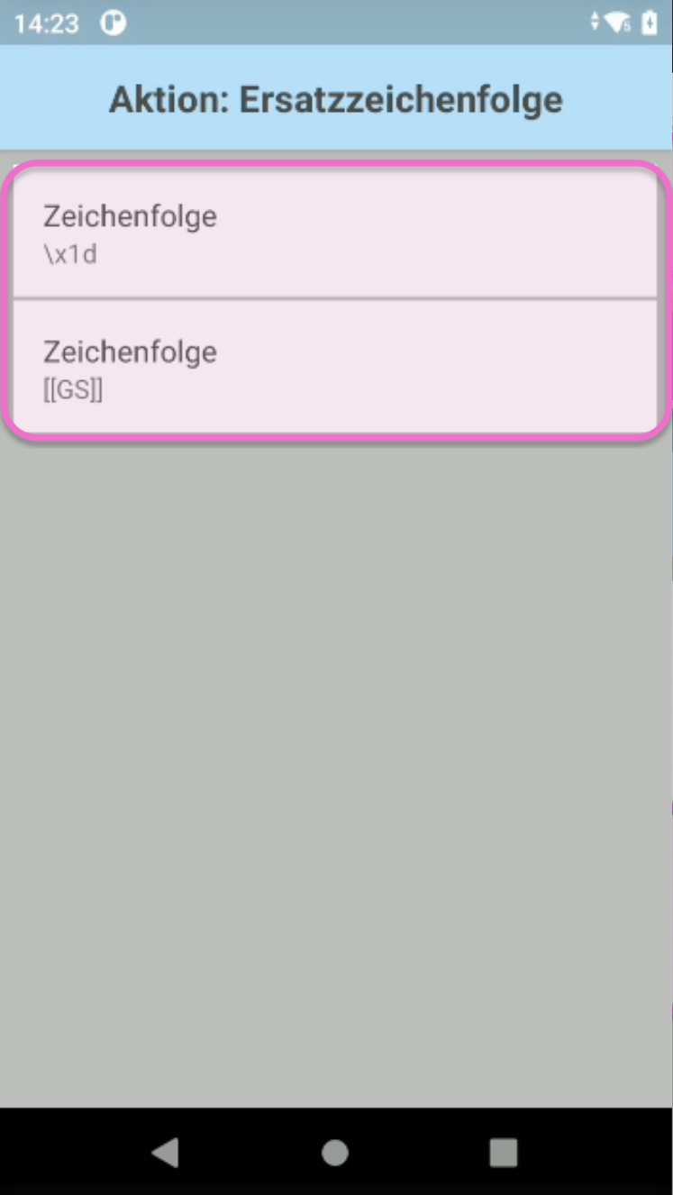 Tippe erneut auf Ersatzzeichenfolge und gib zusätzlich die Zeichenfolge ein. Anschließend solltest du folgende Zeichenfolgen hinterlegt haben: