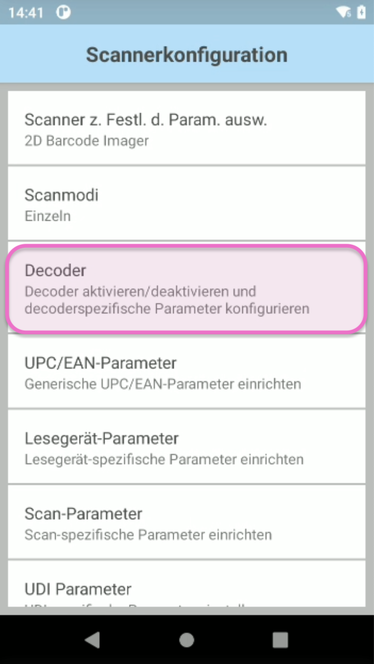 Navigiere zu Barcode-Eingabe > Scanner-Einstellungen konfigurieren.