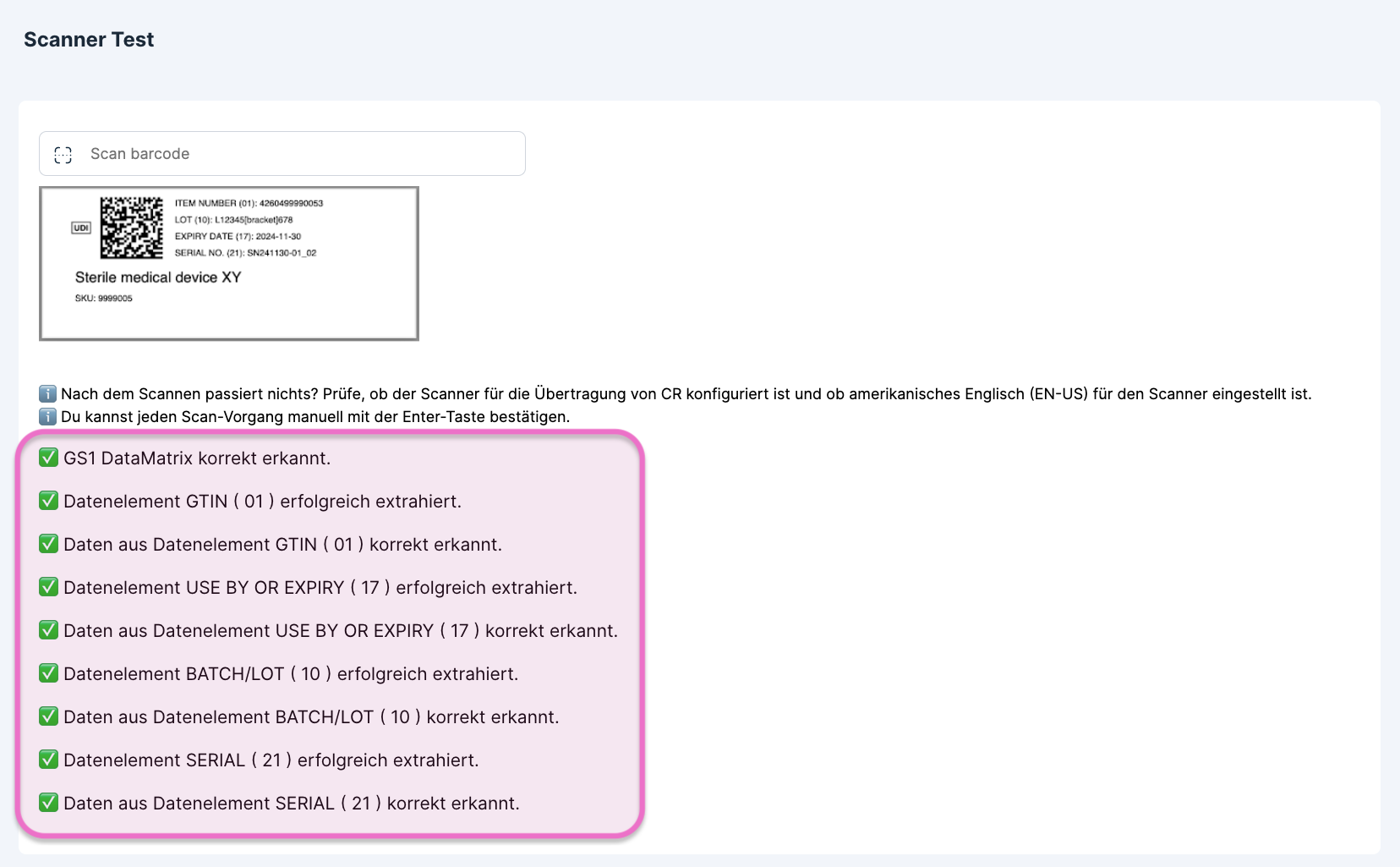 Das Modul Scanner-Test befindet sich aktuell im Beta-Status.