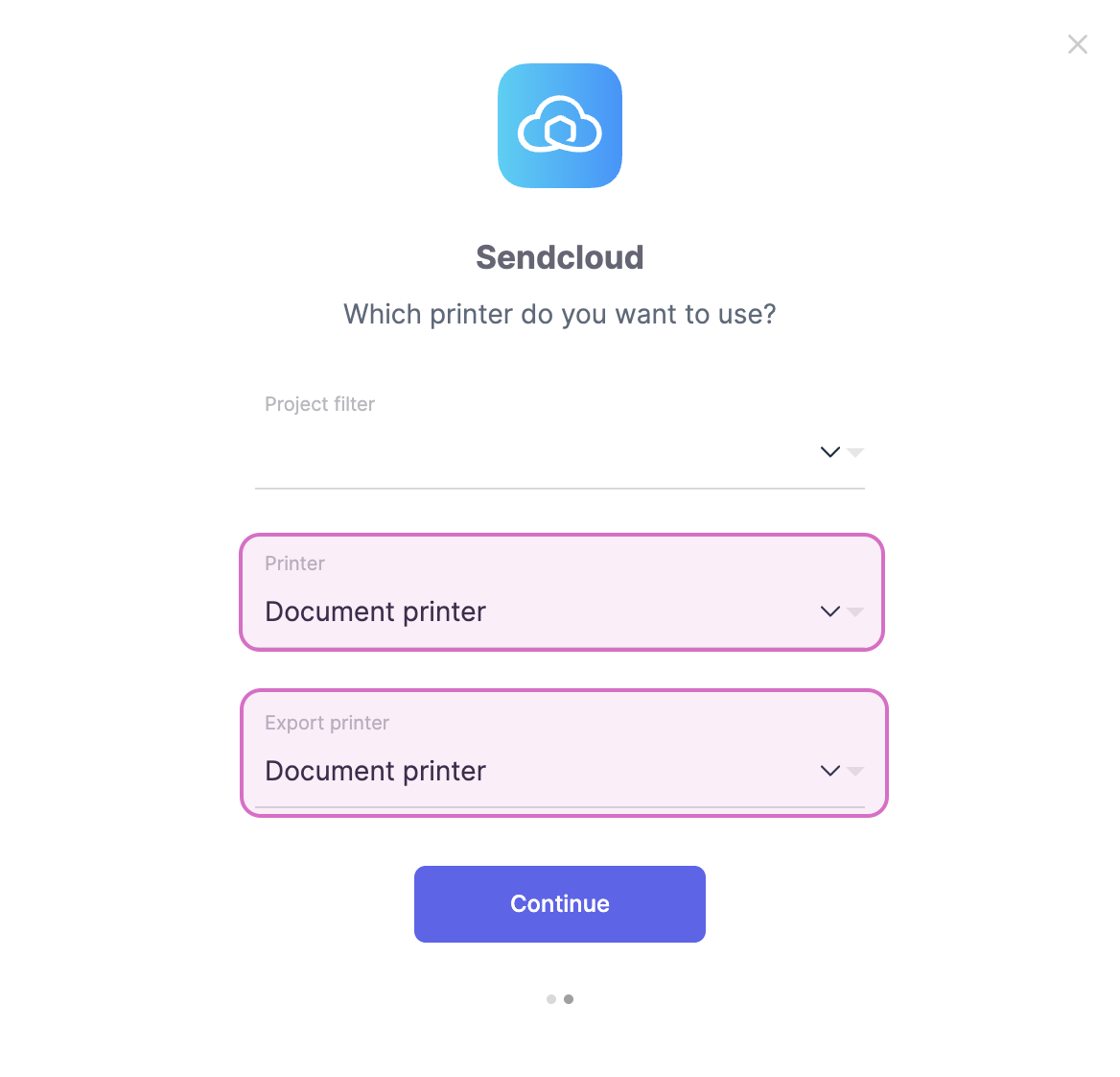 Project filter (optional): Specify a project if you want to use a different printer for the shipping label per sales channel.