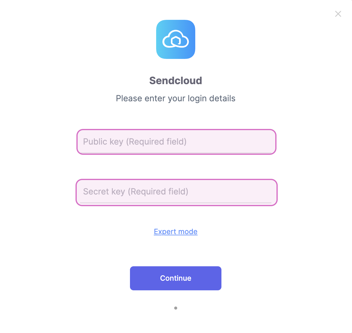 Enter the credentials Public key and Secret key that you have previously generated in the Sendcloud customer portal.