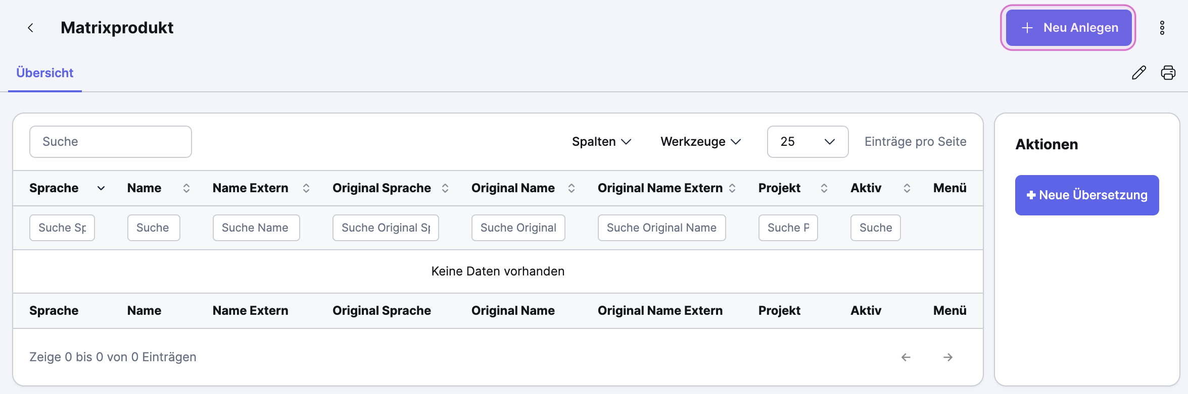 Bevor du ein neues Matrixprodukt anlegst, stelle sicher, dass du ein passendes Matrixgerüst definiert hast.