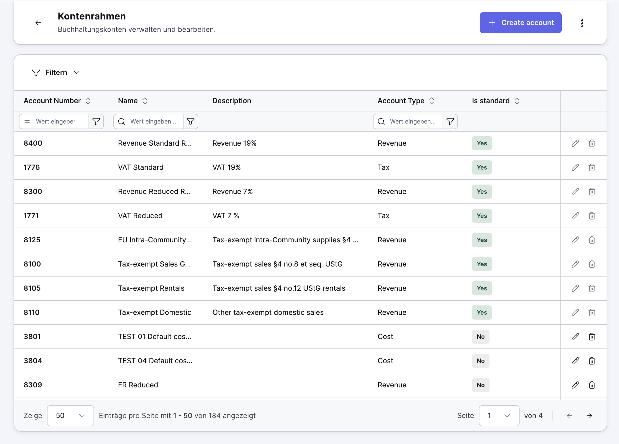 In the beta version you can already create, edit and manage your own accounts. In the future, the Chart of Accounts will form the basis for all areas in Xentral where accounts are used (e.g. postings and DATEV export).