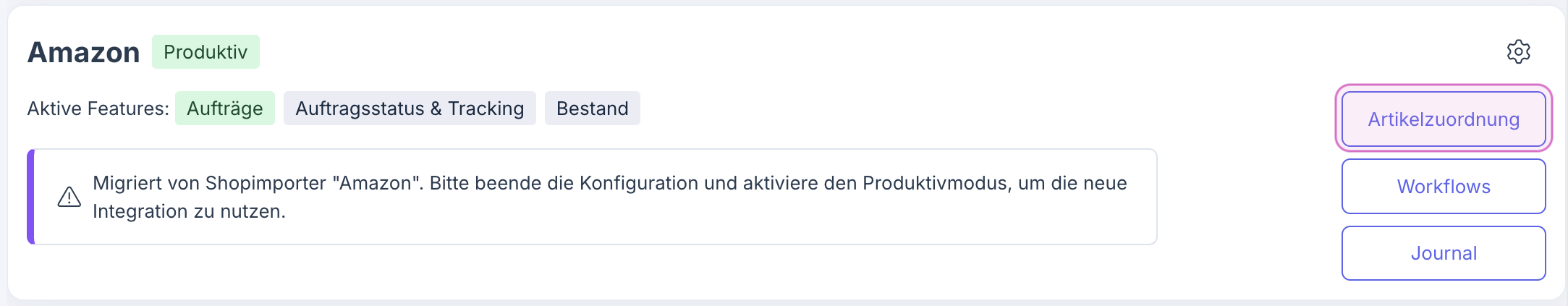 Du erreichst die Artikelzuordnung unter dem Pfad Einstellungen > Verkaufen > Shops/Marktplätze > Amazon > Artikelzuordnung.