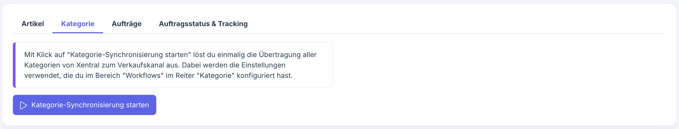 Wir empfehlen dringend, die Synchronisation der Kategorien erst zu aktivieren, wenn die Struktur des Artikelbaums feststeht. Nachträgliche Änderungen können zu Fehlern und Duplikaten führen.