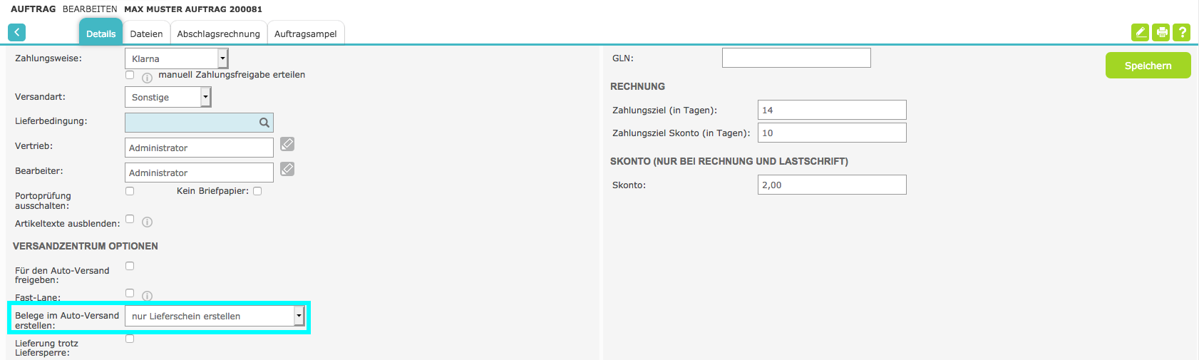 In auto shipping, Xentral creates only one delivery bill for this order, as the invoice is made by Klarna and sent to the customer.