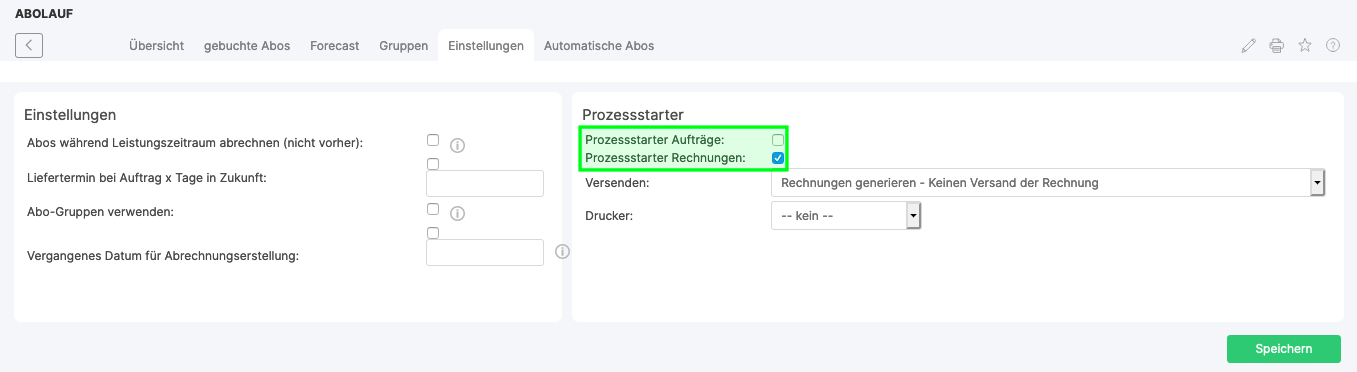 Billing does not necessarily have to take place manually, but can also run automatically via the process starter. The corresponding process starter is called "rechnungslauf" and must be activated for this purpose.