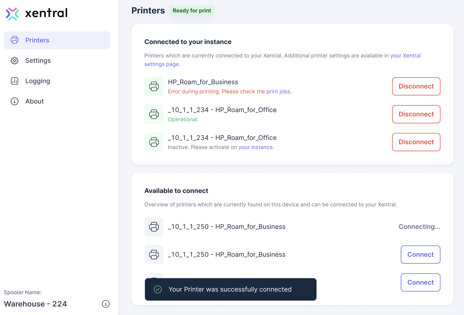 The configuration has now been migrated to the new printer spooler and all the necessary changes have been made to your Xentral instance.