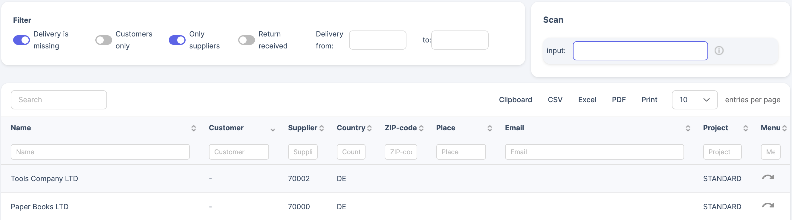 Combine the filters Delivery is missing and Only suppliers to quickly identify all suppliers with undelivered positions.