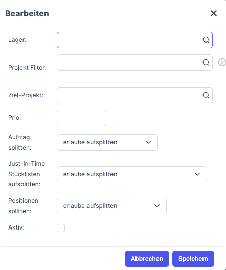Never split sales orders: This option allows you to specify that sales orders are never split, but only assigned to one storage location in its entirety. If the sales order cannot be fulfilled in its entirety, the order status indicator will remain red and you can manually decide how to proceed. You can also use this feature to specifically populate the “Project” and/or “Preferred warehouse” in the sales order.