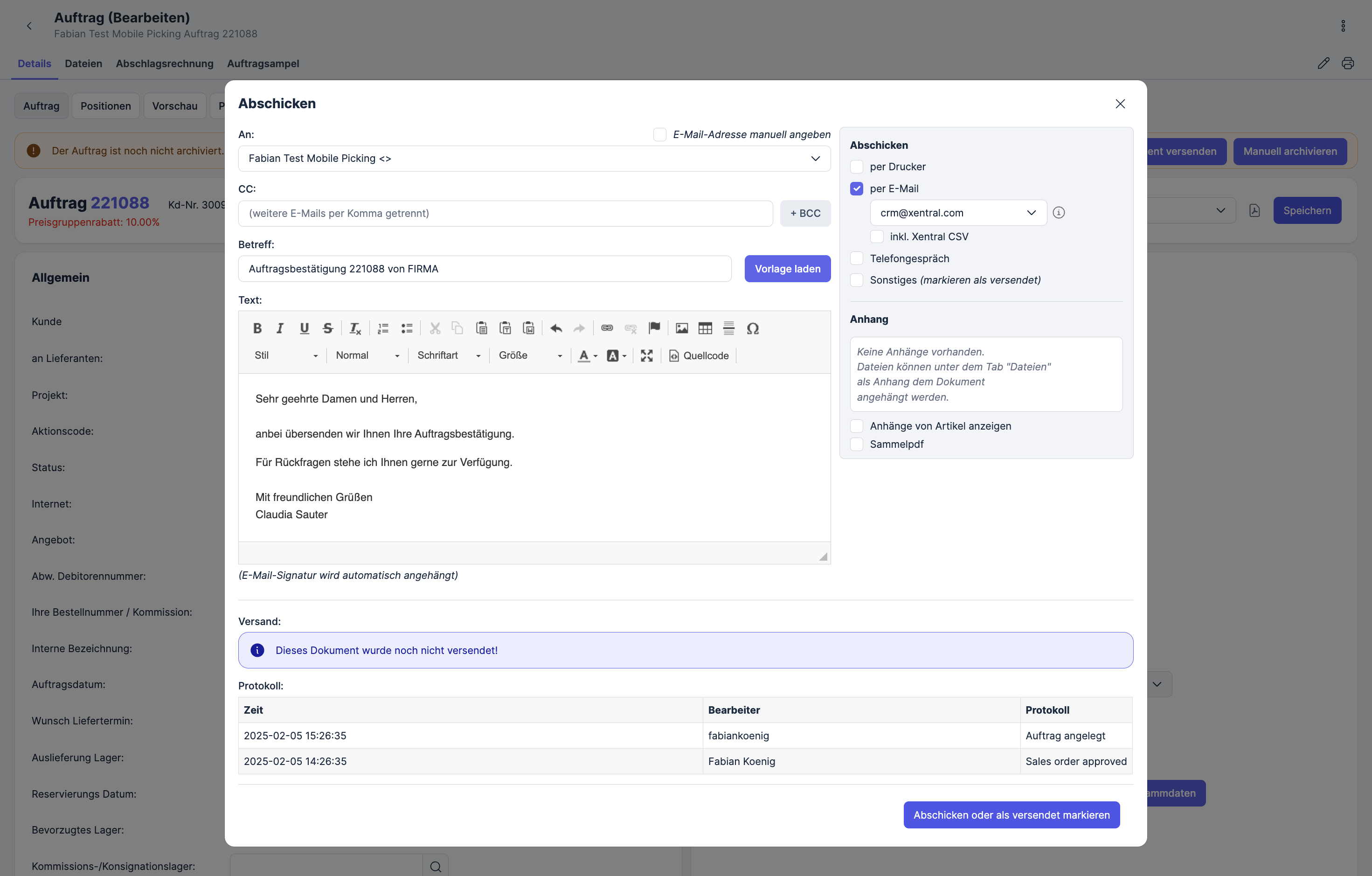 This module is particularly relevant if you frequently send emails from Xentral.