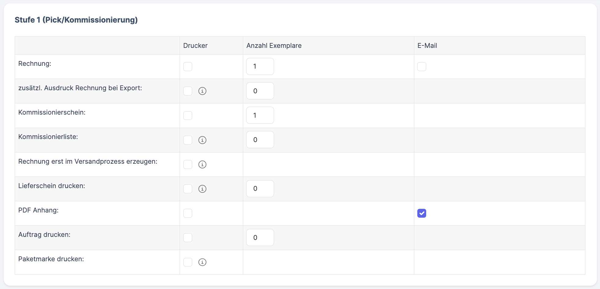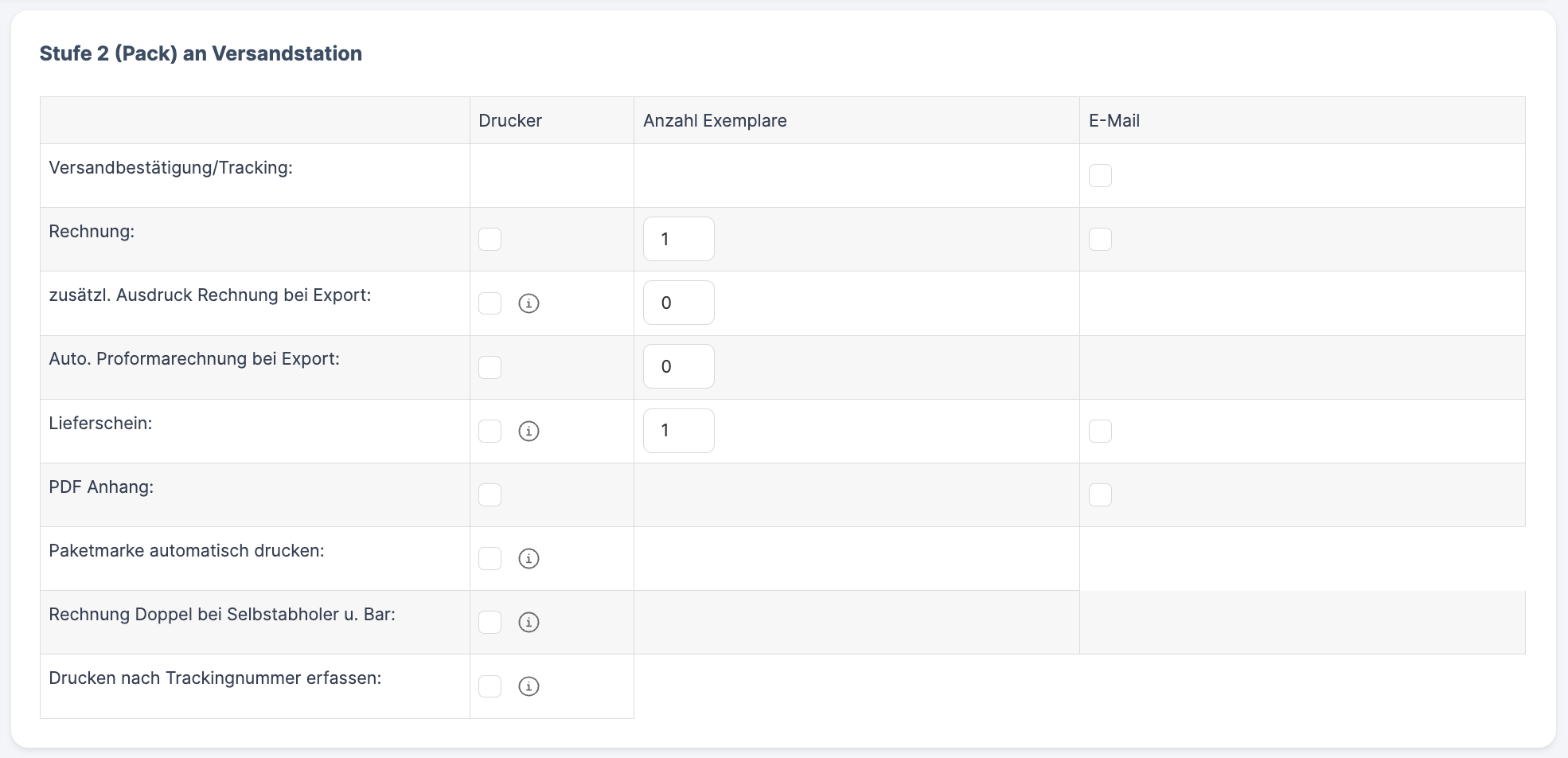 Choose whether you want to print a delivery note. Entering 0 means no delivery note, 1 means a delivery note. You can also send the delivery note by email. In the case of the self-collect shipping method, a double printing is initiated when the delivery document is first printed. |