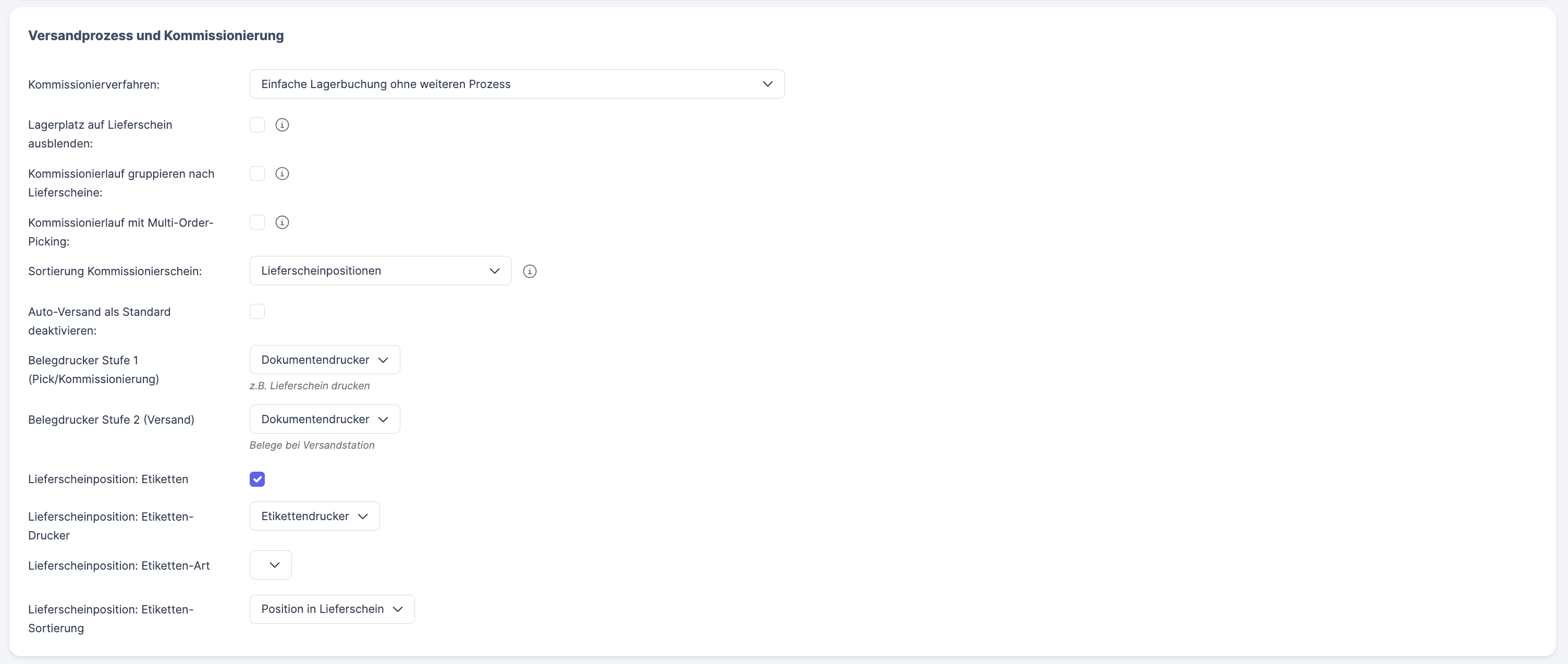 Document printout: It is determined if, when and where invoices, delivery notes and shipping labels are printed within the logistics process.