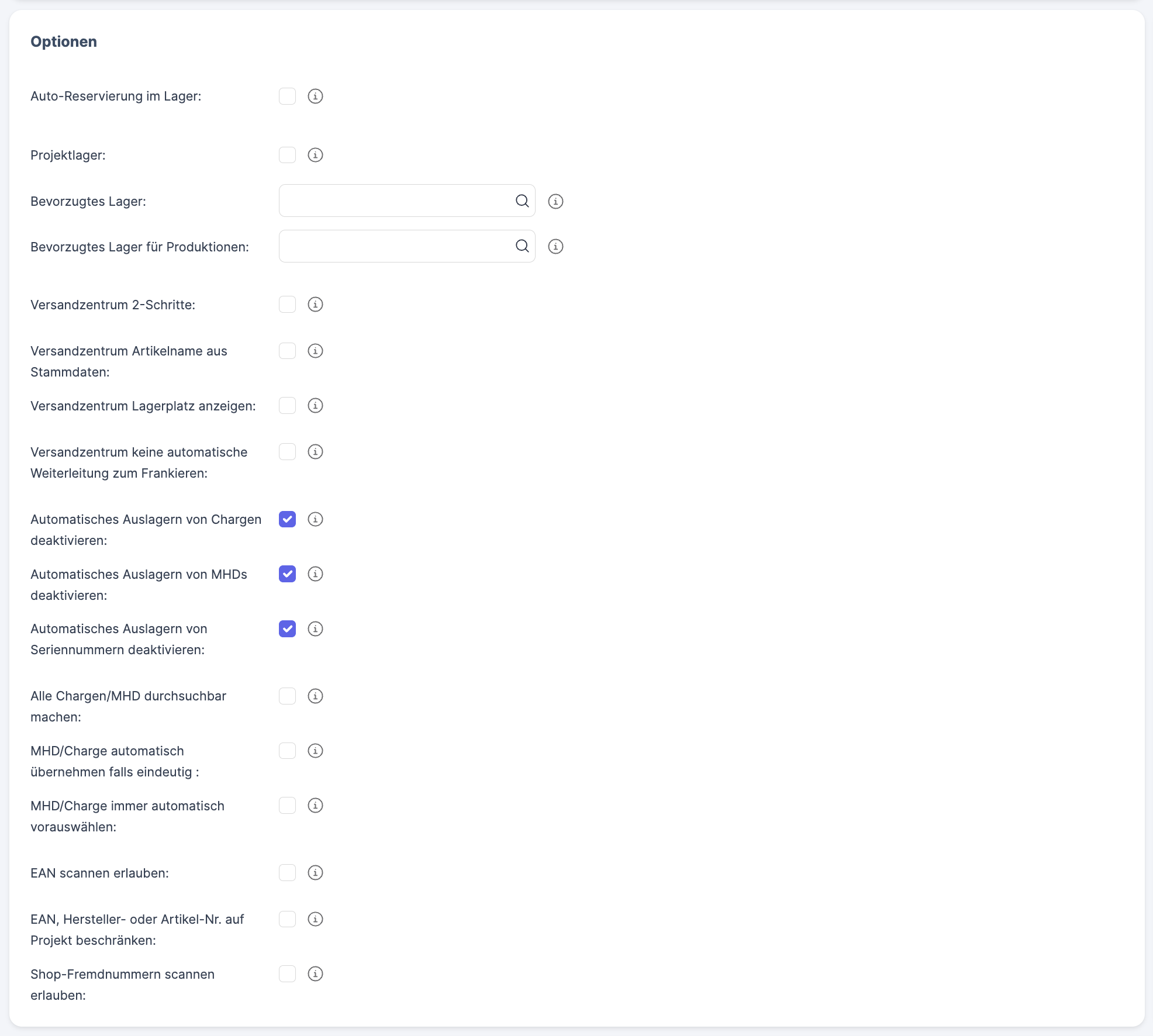 If this option is activated, the product scan will display all batches and best before dates of the product in the dispatch center. If this option is disabled, only the batch or best before date that has been retrieved for the shipping process will be displayed in the dispatch center. |