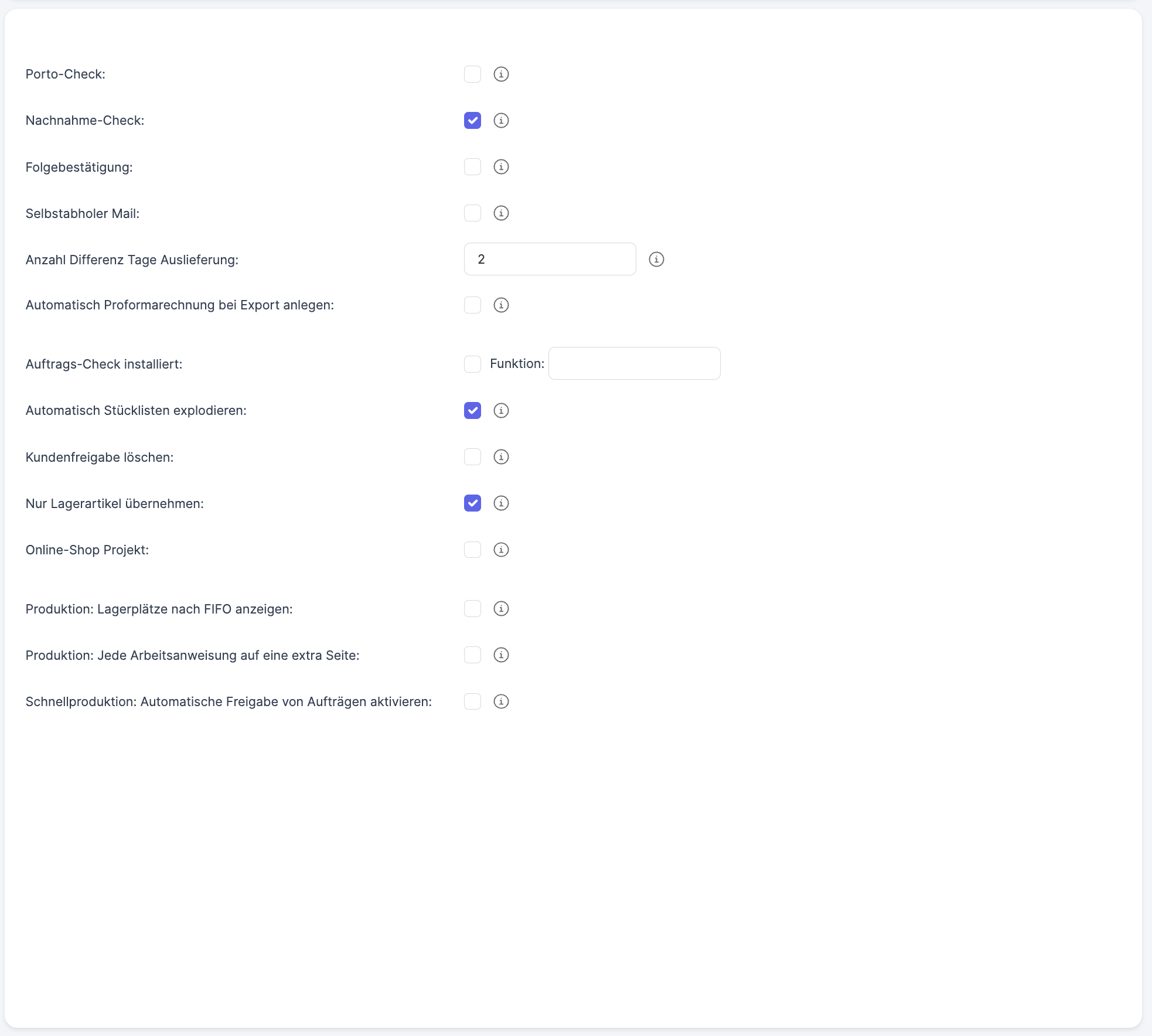 Fast production: Activate automatic release of orders |