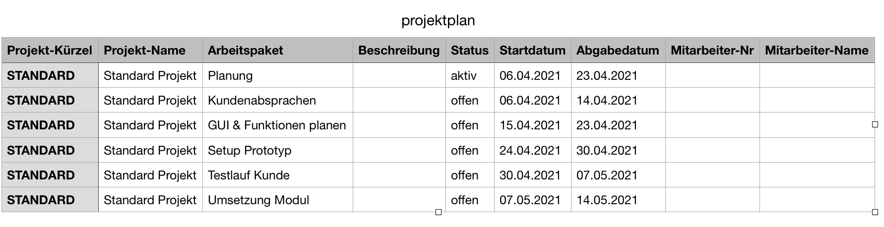 Tasks: On the one hand, all tasks related to the project are displayed here, on the other hand, there is also the option of creating new tasks and assigning them to an employee.